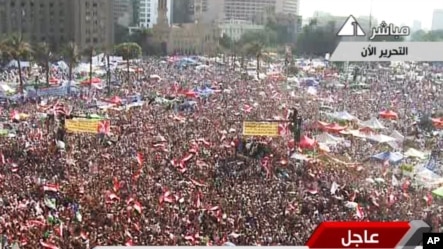 Sebuah kegembiraan besar naik dari alun-alun Tahrir di mana pendukung Morsi berkumpul Minggu. Perayaan orang banyak ditandai perbedaan dari hampir satu setengah tahun yang lalu ketika Mesir dikemas alun-alun di dalam pemberontakan yang menggulingkan pemerintah Hosni Mubarak.